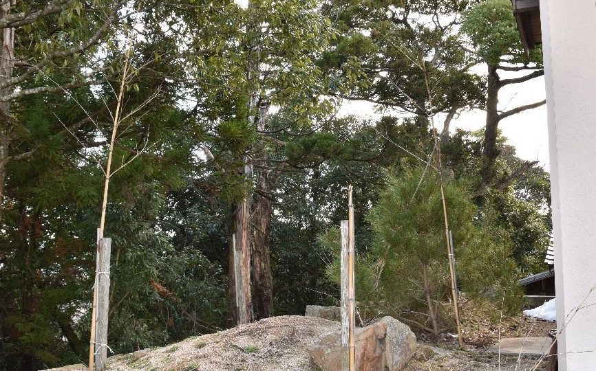 また山頂にある展望台の側に大国主神が座られたと言われている腰掛岩があります。その昔、大国主神の御殿は山中にありましたが、不便を感じ移転しようと考えられ大黒山山頂の岩に腰掛けて開拓された出雲平野を眺め、新たな住居を今の出雲大社に決められたと言われています。